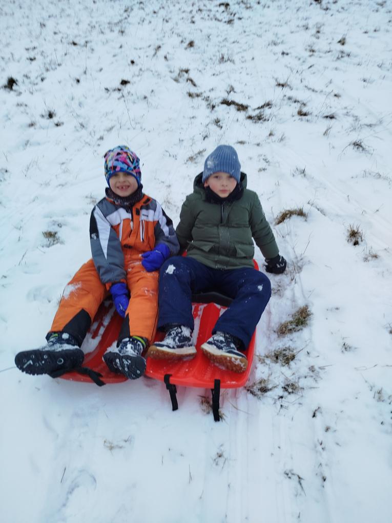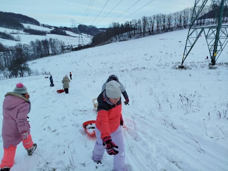 V lednu jsme si se školní družinou užívali sněhovou nadílku, co to jen šlo. Díky tomu, že ve škole mají děti k dispozici boby, mohli jsme vyrazit na kopce za příhodných podmínek kdykoli.