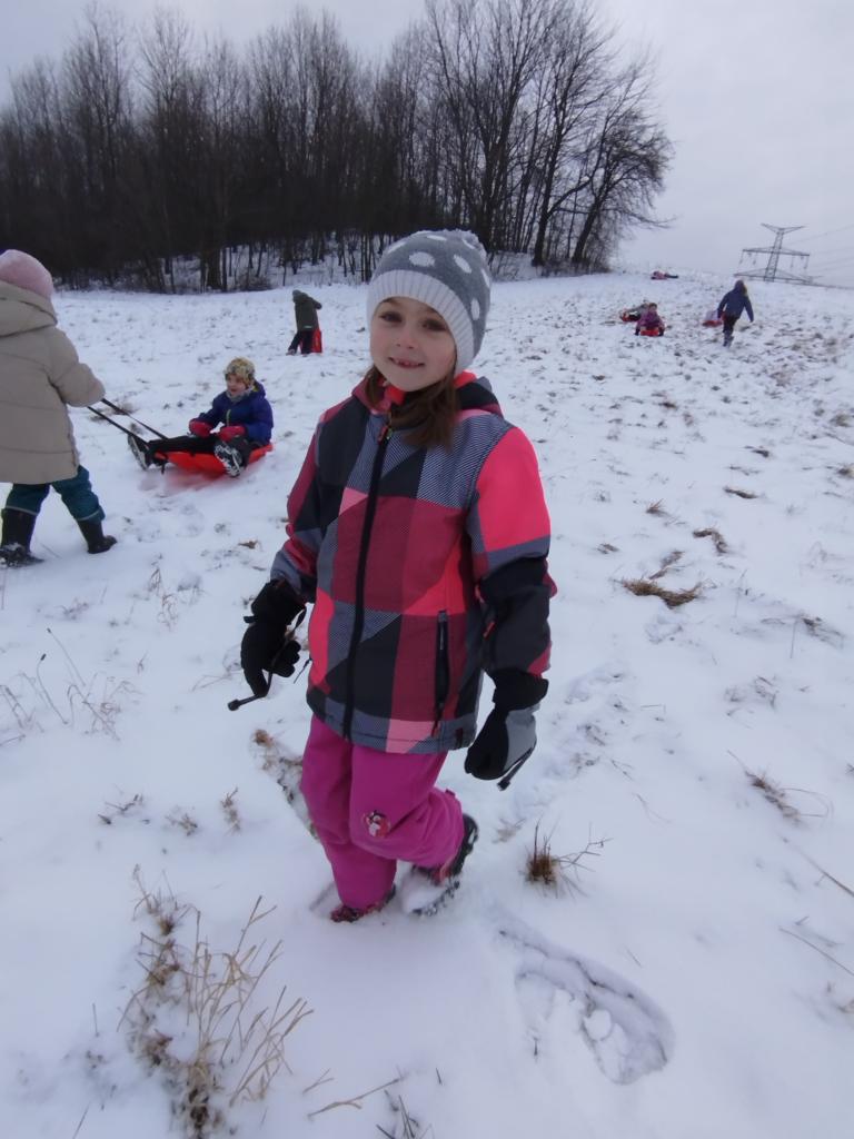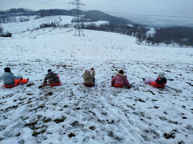 Užívali jsme si různé druhy sněhu. Prakticky byl sníh rychlý, pomalý a stavební. Podle toho jsme dělali andělíčky, váleli sudy, hráli eskymáckou honičku, stavěli sněhuláky, ale hlavní atrakcí byla jízda ze svahu. V poslední disciplíně jsme uspořádali závody, kdo dojede nejdál. A že to opravdu frčelo, až se někdy zdálo, že boby snad ani nezastaví. Chlapci a děvčata se tak zdokonalovali v jízdě slalom, v zatáčení, brzdění, bezpečném padání a ohleduplnosti. Někdy se zdálo, že soutěžíme i v radostném křiku a smíchu.