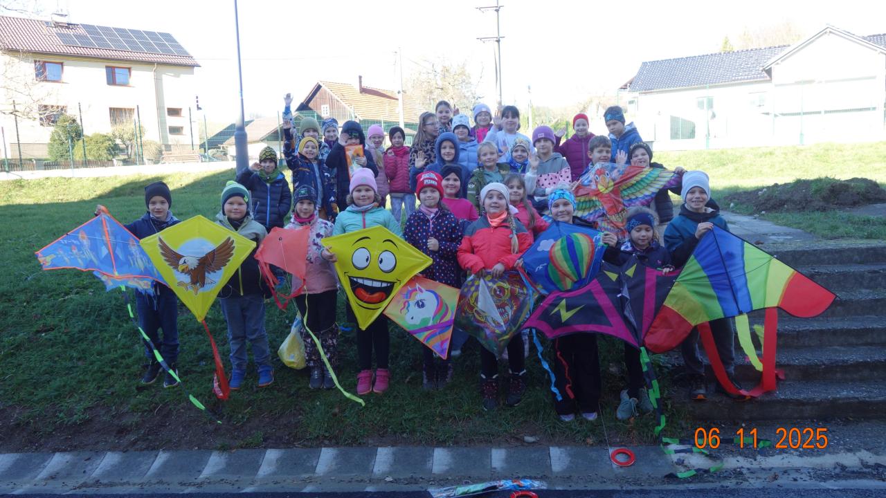 Zpočátku listopadu jsme si vyčíhli pár dnů s příhodným počasím pro pouštění draků. Na našem oblíbeném kopci se ale zrovna pásly krávy. Nezbylo, než jít na protější vyvýšeninu, však vítr bude jistě i tam. No, zprvu jsme ho museli hodně přemlouvat, ale dětem stačilo krásné teplé počasí a s chutí běhaly z kopce dolů s draky v patách. Další den to bylo mnohem lepší, mohli jsme popustit šňůry daleko více. A do třetice si vítr draky sám podebral a unášel je do nebeských výšin až byly odmotány celé provázky.