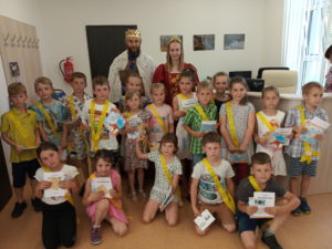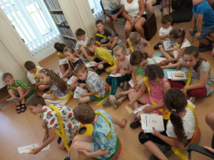 Ve úterý 20. června 2023 přišli prvňáci se svými rodiči do knihovny na OÚ Veřovice, aby byli slavnostně pasováni na čtenáře. Děti měly předvést, že se naučily v první třídě číst a zaslouží si být právem pasovány na rytíře a rytířky písmenkové říše. Po přečtení krátkého textu mladí čtenáři slíbili, že se budou ke knížkám chovat pěkně a správně. Jako dárek dostali knížku a čtenářský průkaz do knihovny. A nechyběla ani sladká odměna. Děkujeme knihovnicím, že pozvaly krále a královnu z Písmenkové říše a dětem přejeme mnoho přečtených knih.