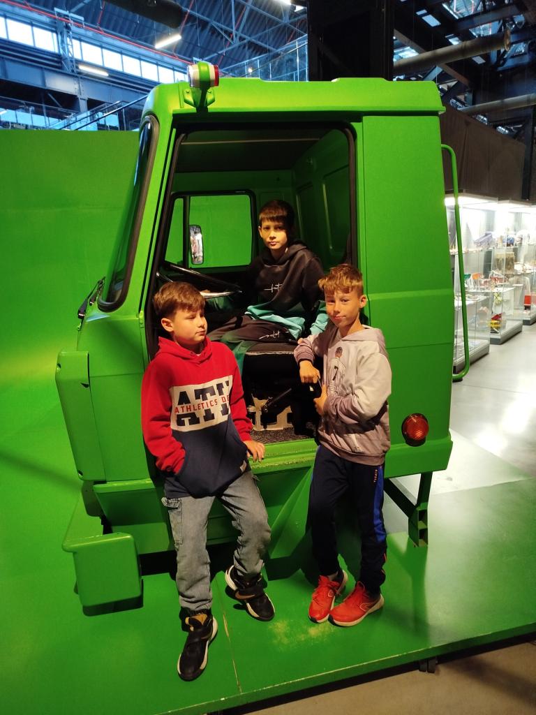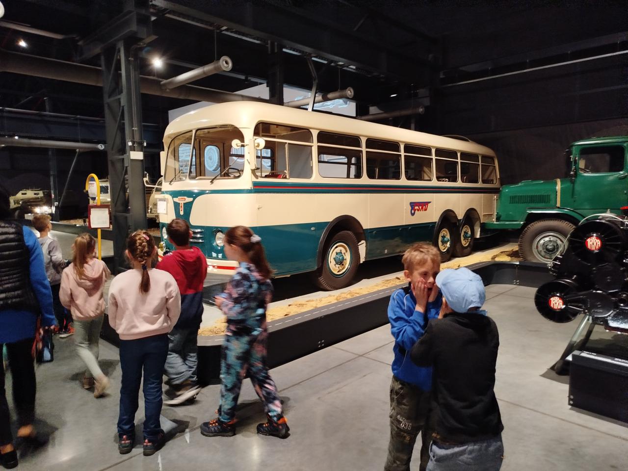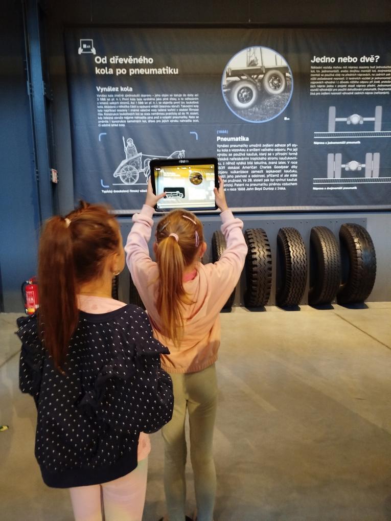V určenou dobu si nás vyzvedla paní průvodkyně, která pro nás měla připravený zajímavý program. Vyslechli jsme si přednášku o historii světoznámé automobilky, zhlédli video o zakladateli, vývoji vozidel od kočárů k automobilům a s komentovanou prohlídkou jsme se vydali k vystaveným předmětům. K vidění bylo několik desítek náklaďáků, mnoho modelů různých vozů, motorů, motocyklů, kol a pod., vše v časové posloupnosti výroby. Pomocí moderních technologií si žáci zažili i netradiční interakci s muzejními exponáty.