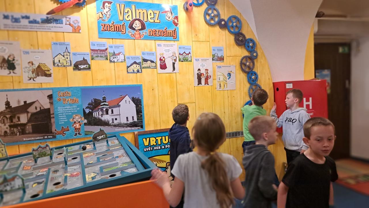 Ráno jsme se sešli na vlakovém nádraží, odkud jsme jeli do Valašského Meziříčí. Zde jsme navštívili zábavné a vzdělávací středisko Vrtule, kde si každý mohl vyzkoušet spoustu rozličných aktivit. Zapojit mohli jak fyzickou zručnost, tak bystrost nebo postřeh a přemýšlení.